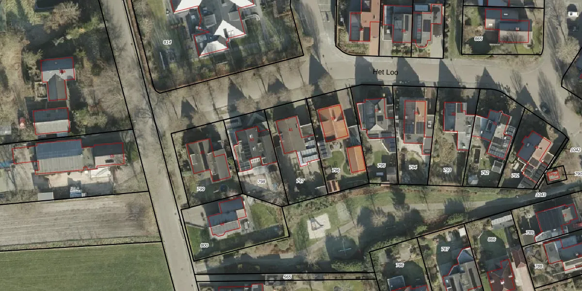 Het perceel waarop Het Loo 41 staat heeft een oppervlakte van 489 m². Dit is een groot perceel. De perceeloppervlakte wordt geregistreerd door het Kadaster. Gedetailleerde informatie over de maten van dit perceel kunt u vinden in het rapport Kadastrale kaart met maatvoering van Het Loo 41.