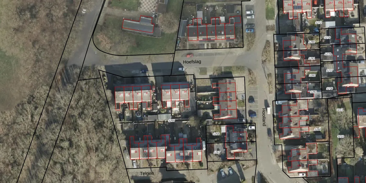 Hoefslag 14 is gelegen op kadastraal perceel WDN02N1269. Deze kadastrale aanduiding is uniek en wordt gebruikt door het Kadaster om eigendomsrechten en andere zakelijke rechten vast te leggen. Het perceel maakt onderdeel uit van de kadastrale gemeente Wierden.