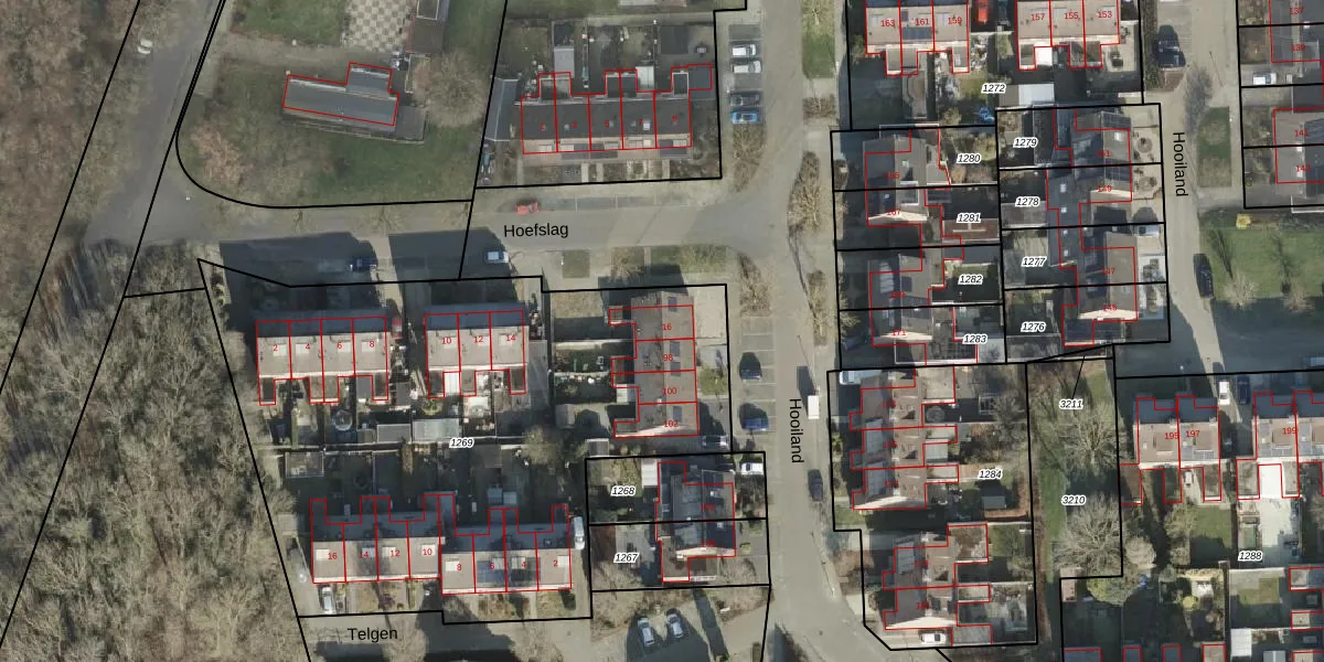 Hoefslag 16 is gelegen op kadastraal perceel WDN02N1269. Deze kadastrale aanduiding is uniek en wordt gebruikt door het Kadaster om eigendomsrechten en andere zakelijke rechten vast te leggen. Het perceel maakt onderdeel uit van de kadastrale gemeente Wierden.