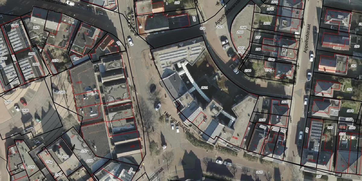 Het perceel waarop Hof van Buuren 4 staat heeft een oppervlakte van 1969 m². Dit is een zeer groot perceel. De perceeloppervlakte wordt geregistreerd door het Kadaster. Gedetailleerde informatie over de maten van dit perceel kunt u vinden in het rapport Kadastrale kaart met maatvoering van Hof van Buuren 4.