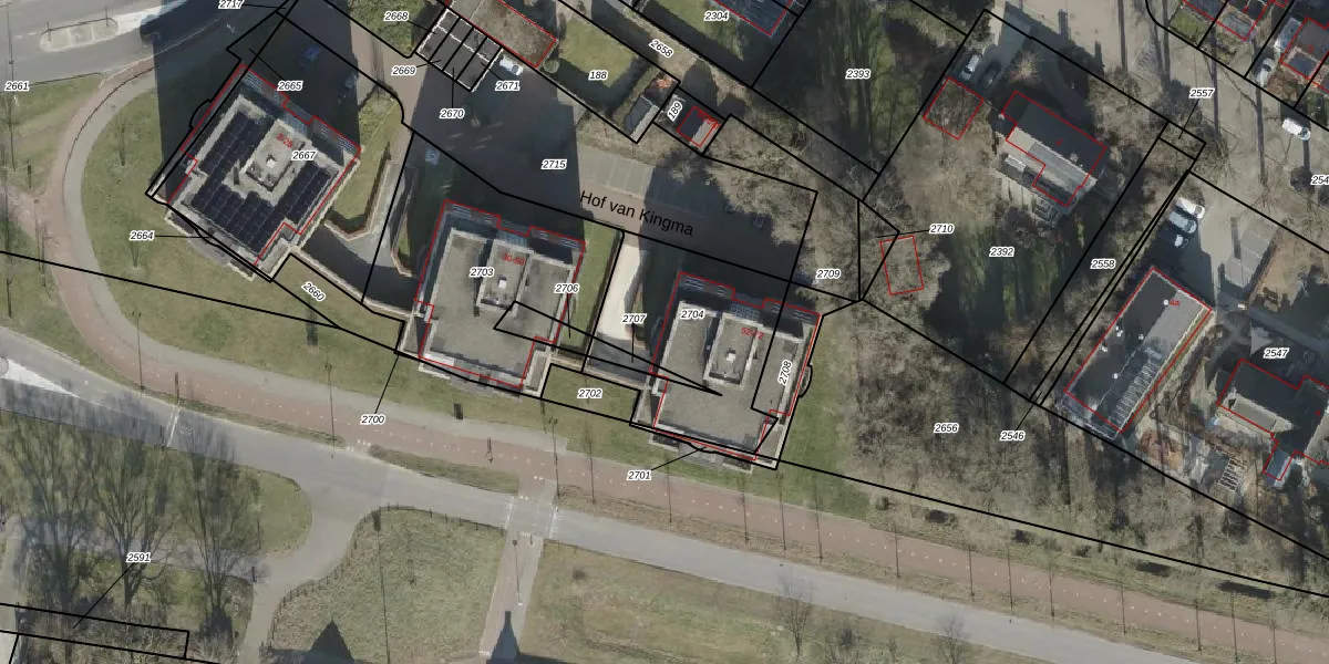 Het perceel waarop Hof van Kingma 62 staat heeft een oppervlakte van 646 m². Dit is een groot perceel. De perceeloppervlakte wordt geregistreerd door het Kadaster. Gedetailleerde informatie over de maten van dit perceel kunt u vinden in het rapport Kadastrale kaart met maatvoering van Hof van Kingma 62.