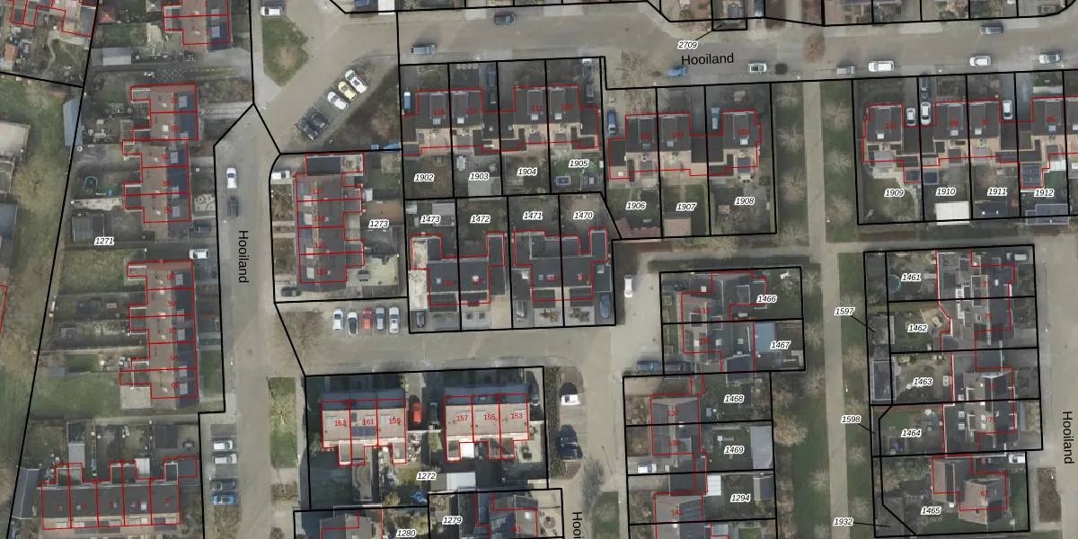 Gebruik de zoekbalk of klik op een perceel voor informatie over de adressen binnen dit perceel.