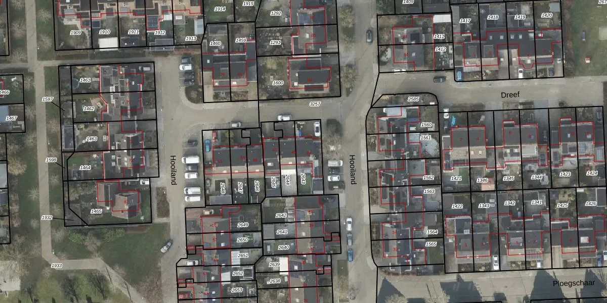 Het perceel waarop Hooiland 43 staat heeft een oppervlakte van 214 m². Dit is een middelgroot perceel. De perceeloppervlakte wordt geregistreerd door het Kadaster. Gedetailleerde informatie over de maten van dit perceel kunt u vinden in het rapport Kadastrale kaart met maatvoering van Hooiland 43.
