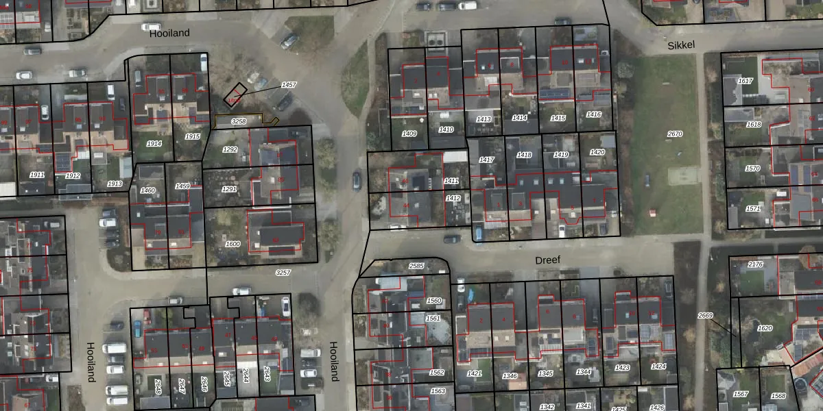 Hooiland 44 is gelegen op kadastraal perceel WDN02N1412. Deze kadastrale aanduiding is uniek en wordt gebruikt door het Kadaster om eigendomsrechten en andere zakelijke rechten vast te leggen. Het perceel maakt onderdeel uit van de kadastrale gemeente Wierden.