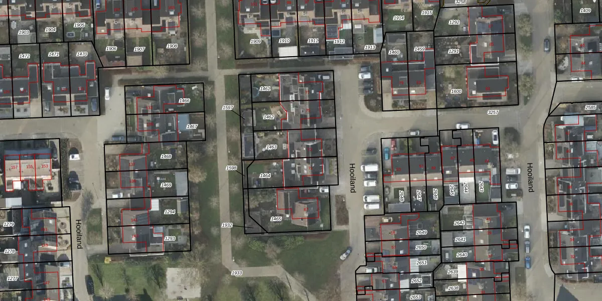 Het perceel waarop Hooiland 73 staat heeft een oppervlakte van 262 m². Dit is een middelgroot perceel. De perceeloppervlakte wordt geregistreerd door het Kadaster. Gedetailleerde informatie over de maten van dit perceel kunt u vinden in het rapport Kadastrale kaart met maatvoering van Hooiland 73.