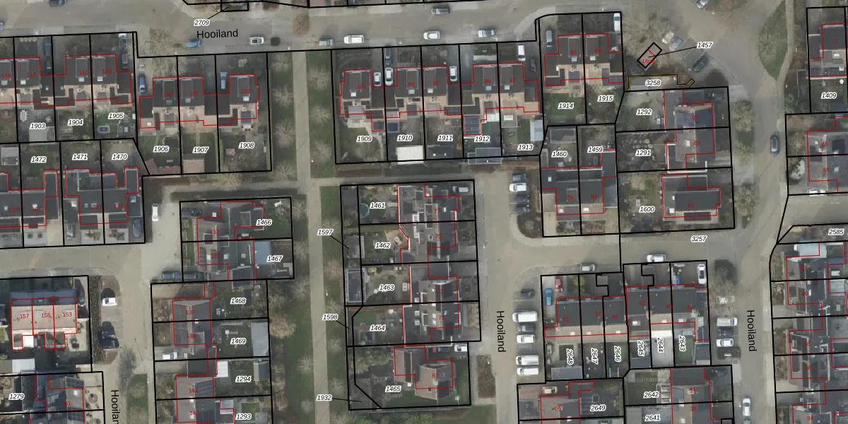 Het perceel waarop Hooiland 77 staat heeft een oppervlakte van 260 m². Dit is een middelgroot perceel. De perceeloppervlakte wordt geregistreerd door het Kadaster. Gedetailleerde informatie over de maten van dit perceel kunt u vinden in het rapport Kadastrale kaart met maatvoering van Hooiland 77.