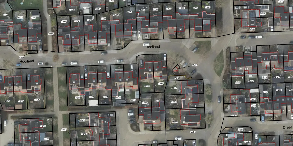 Hooiland 91 is gelegen op kadastraal perceel WDN02N1914. Deze kadastrale aanduiding is uniek en wordt gebruikt door het Kadaster om eigendomsrechten en andere zakelijke rechten vast te leggen. Het perceel maakt onderdeel uit van de kadastrale gemeente Wierden.
