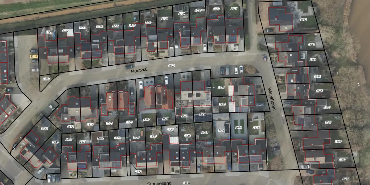 Gebruik de zoekbalk of klik op een perceel voor informatie over de adressen binnen dit perceel.