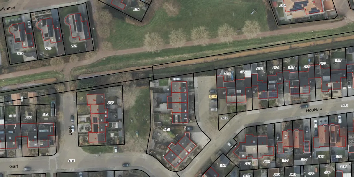 Het perceel waarop Houtwal 15 staat heeft een oppervlakte van 1358 m². Dit is een zeer groot perceel. De perceeloppervlakte wordt geregistreerd door het Kadaster. Gedetailleerde informatie over de maten van dit perceel kunt u vinden in het rapport Kadastrale kaart met maatvoering van Houtwal 15.