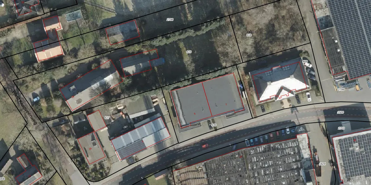 Industrieweg 5 is gelegen op kadastraal perceel WDN02N939. Deze kadastrale aanduiding is uniek en wordt gebruikt door het Kadaster om eigendomsrechten en andere zakelijke rechten vast te leggen. Het perceel maakt onderdeel uit van de kadastrale gemeente Wierden.