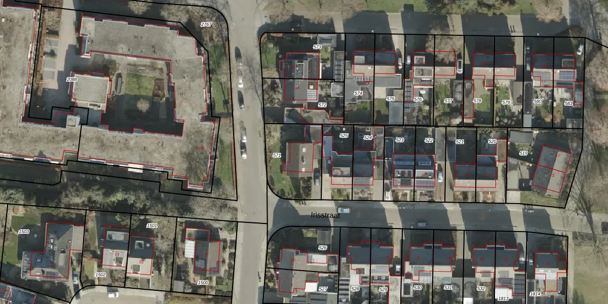 Het perceel waarop Irisstraat 1 staat heeft een oppervlakte van 443 m². Dit is een groot perceel. De perceeloppervlakte wordt geregistreerd door het Kadaster. Gedetailleerde informatie over de maten van dit perceel kunt u vinden in het rapport Kadastrale kaart met maatvoering van Irisstraat 1.