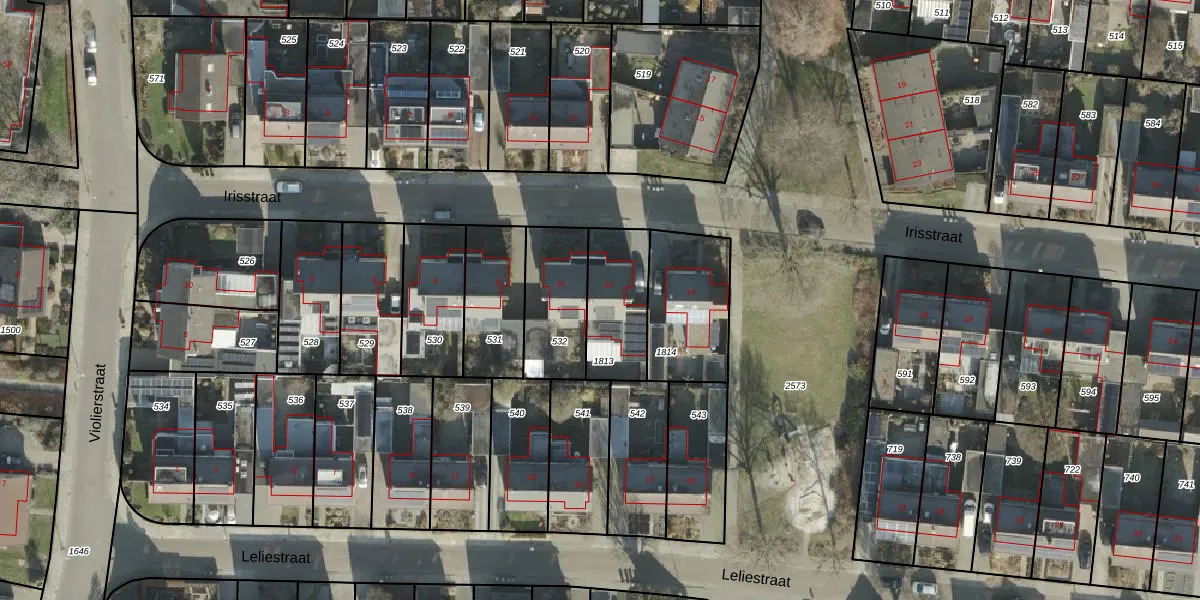 Het perceel waarop Irisstraat 12 staat heeft een oppervlakte van 263 m². Dit is een middelgroot perceel. De perceeloppervlakte wordt geregistreerd door het Kadaster. Gedetailleerde informatie over de maten van dit perceel kunt u vinden in het rapport Kadastrale kaart met maatvoering van Irisstraat 12.