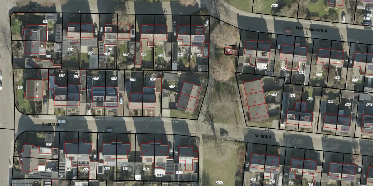 Het perceel waarop Irisstraat 17 staat heeft een oppervlakte van 574 m². Dit is een groot perceel. De perceeloppervlakte wordt geregistreerd door het Kadaster. Gedetailleerde informatie over de maten van dit perceel kunt u vinden in het rapport Kadastrale kaart met maatvoering van Irisstraat 17.