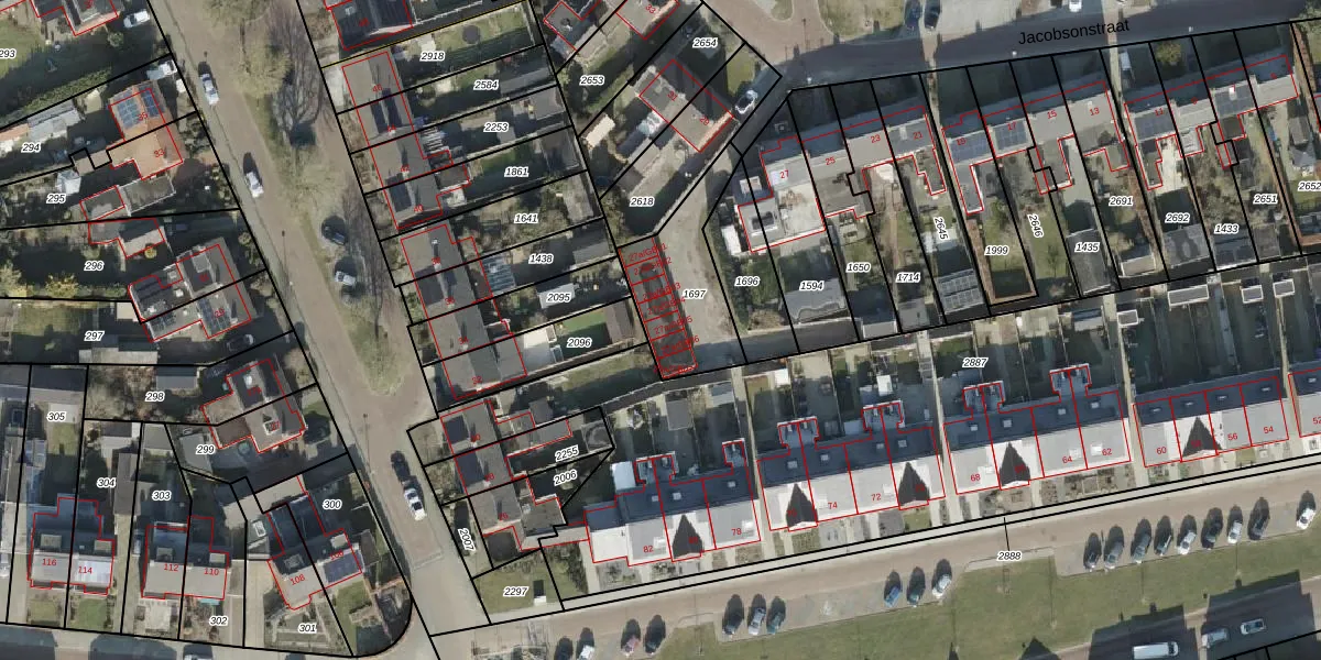 Het perceel waarop Jacobsonstraat 27-a-GB05 staat heeft een oppervlakte van 353 m². Dit is een groot perceel. De perceeloppervlakte wordt geregistreerd door het Kadaster. Gedetailleerde informatie over de maten van dit perceel kunt u vinden in het rapport Kadastrale kaart met maatvoering van Jacobsonstraat 27-a-GB05.