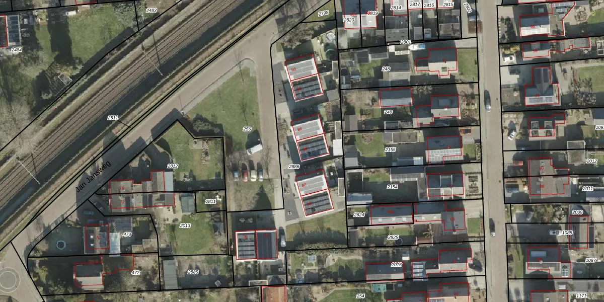 Het perceel waarop Jan Jansweg 84 staat heeft een oppervlakte van 2028 m². Dit is een zeer groot perceel. De perceeloppervlakte wordt geregistreerd door het Kadaster. Gedetailleerde informatie over de maten van dit perceel kunt u vinden in het rapport Kadastrale kaart met maatvoering van Jan Jansweg 84.