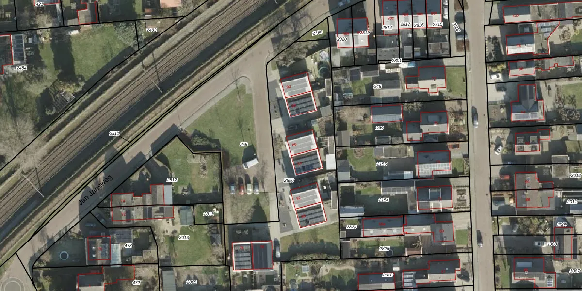 Het perceel waarop Jan Jansweg 86 staat heeft een oppervlakte van 2028 m². Dit is een zeer groot perceel. De perceeloppervlakte wordt geregistreerd door het Kadaster. Gedetailleerde informatie over de maten van dit perceel kunt u vinden in het rapport Kadastrale kaart met maatvoering van Jan Jansweg 86.