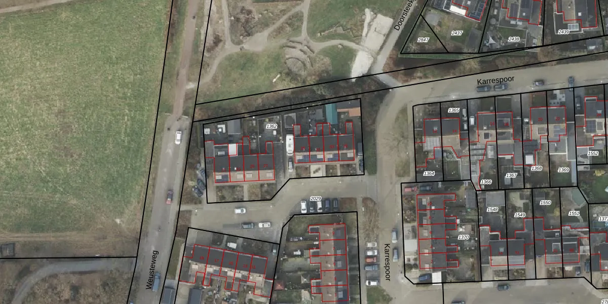 Het perceel waarop Karrespoor 29 staat heeft een oppervlakte van 1321 m². Dit is een zeer groot perceel. De perceeloppervlakte wordt geregistreerd door het Kadaster. Gedetailleerde informatie over de maten van dit perceel kunt u vinden in het rapport Kadastrale kaart met maatvoering van Karrespoor 29.