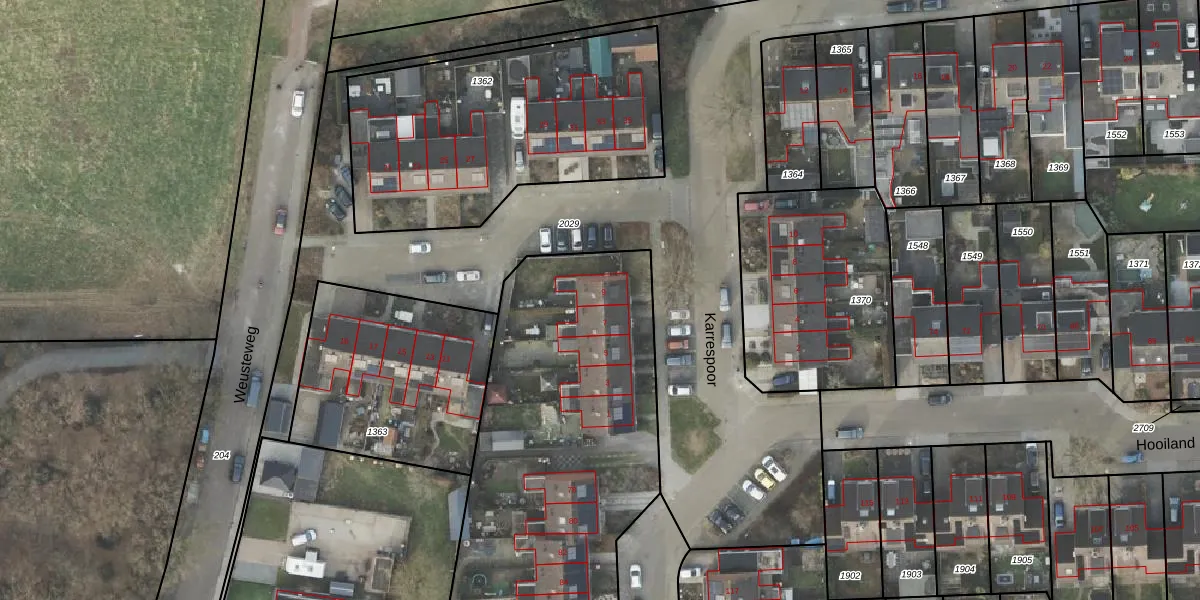 Het perceel waarop Karrespoor 9 staat heeft een oppervlakte van 3779 m². Dit is een zeer groot perceel. De perceeloppervlakte wordt geregistreerd door het Kadaster. Gedetailleerde informatie over de maten van dit perceel kunt u vinden in het rapport Kadastrale kaart met maatvoering van Karrespoor 9.