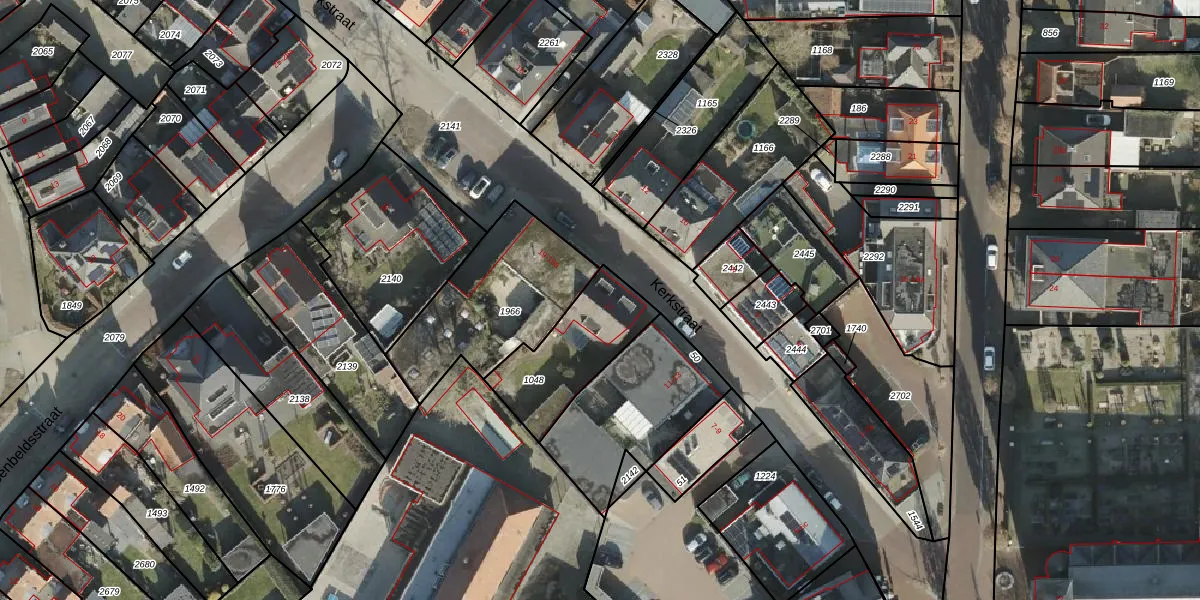 Het perceel waarop Kerkstraat 17 staat heeft een oppervlakte van 340 m². Dit is een groot perceel. De perceeloppervlakte wordt geregistreerd door het Kadaster. Gedetailleerde informatie over de maten van dit perceel kunt u vinden in het rapport Kadastrale kaart met maatvoering van Kerkstraat 17.