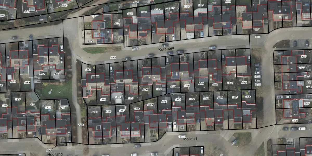 Het perceel waarop Korenaar 13 staat heeft een oppervlakte van 225 m². Dit is een middelgroot perceel. De perceeloppervlakte wordt geregistreerd door het Kadaster. Gedetailleerde informatie over de maten van dit perceel kunt u vinden in het rapport Kadastrale kaart met maatvoering van Korenaar 13.