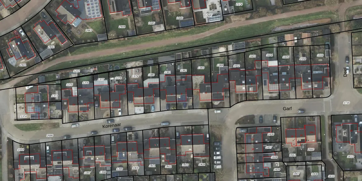 Het perceel waarop Korenaar 6 staat heeft een oppervlakte van 242 m². Dit is een middelgroot perceel. De perceeloppervlakte wordt geregistreerd door het Kadaster. Gedetailleerde informatie over de maten van dit perceel kunt u vinden in het rapport Kadastrale kaart met maatvoering van Korenaar 6.