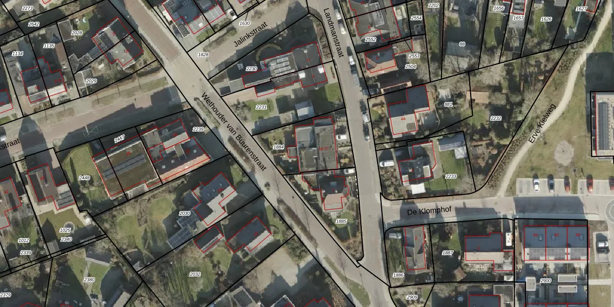 Het perceel waarop Landmanstraat 1-a staat heeft een oppervlakte van 476 m². Dit is een groot perceel. De perceeloppervlakte wordt geregistreerd door het Kadaster. Gedetailleerde informatie over de maten van dit perceel kunt u vinden in het rapport Kadastrale kaart met maatvoering van Landmanstraat 1-a.