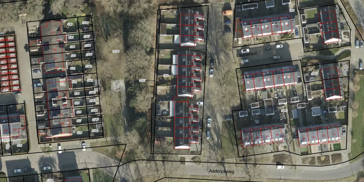 Het perceel waarop Laurierhof 9 staat heeft een oppervlakte van 2110 m². Dit is een zeer groot perceel. De perceeloppervlakte wordt geregistreerd door het Kadaster. Gedetailleerde informatie over de maten van dit perceel kunt u vinden in het rapport Kadastrale kaart met maatvoering van Laurierhof 9.