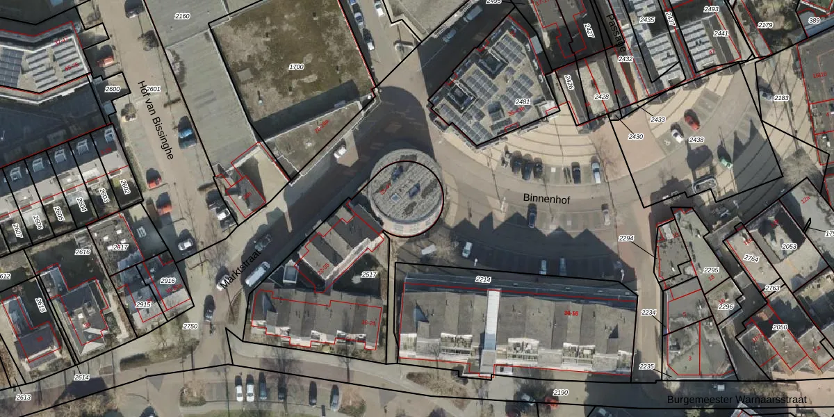 Het perceel waarop Marktstraat 39 staat heeft een oppervlakte van 1216 m². Dit is een zeer groot perceel. De perceeloppervlakte wordt geregistreerd door het Kadaster. Gedetailleerde informatie over de maten van dit perceel kunt u vinden in het rapport Kadastrale kaart met maatvoering van Marktstraat 39.