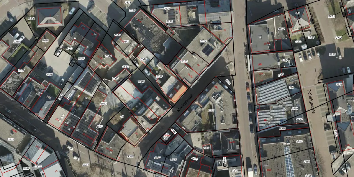 Het perceel waarop Marktstraat 6 staat heeft een oppervlakte van 350 m². Dit is een groot perceel. De perceeloppervlakte wordt geregistreerd door het Kadaster. Gedetailleerde informatie over de maten van dit perceel kunt u vinden in het rapport Kadastrale kaart met maatvoering van Marktstraat 6.