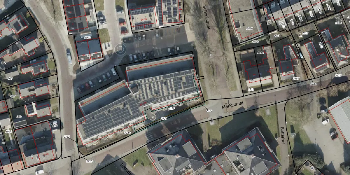 Het perceel waarop Marktstraat 68 staat heeft een oppervlakte van 2205 m². Dit is een zeer groot perceel. De perceeloppervlakte wordt geregistreerd door het Kadaster. Gedetailleerde informatie over de maten van dit perceel kunt u vinden in het rapport Kadastrale kaart met maatvoering van Marktstraat 68.
