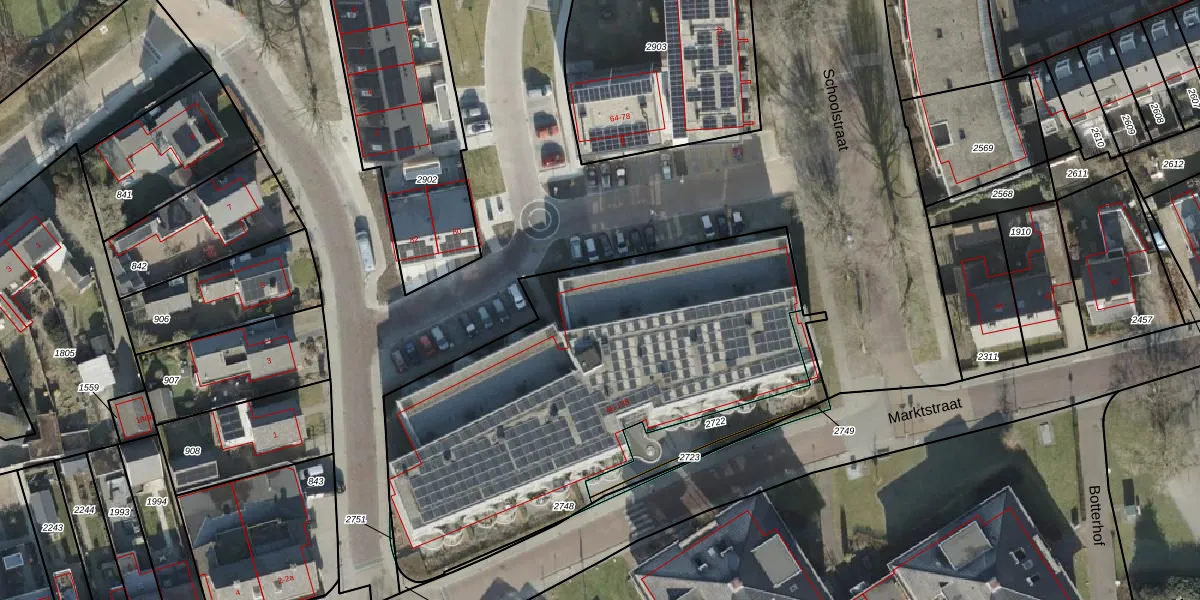 Het perceel waarop Marktstraat 84 staat heeft een oppervlakte van 2205 m². Dit is een zeer groot perceel. De perceeloppervlakte wordt geregistreerd door het Kadaster. Gedetailleerde informatie over de maten van dit perceel kunt u vinden in het rapport Kadastrale kaart met maatvoering van Marktstraat 84.