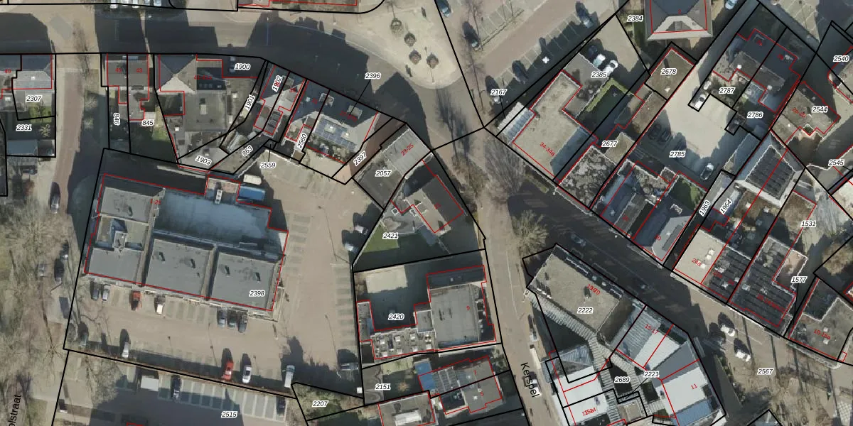Het adres is gelegen op perceel 2421 in de sectie K en de kadastrale gemeente Wierden. De kadastrale aanduiding is aldus WDN02-K-2421. Het perceel is kleiner dan gemiddeld in Wierden. Het perceel is 440 m² groot, terwijl het gemiddelde ligt op 5348,38 m². De grootste perceeloppervlakte in de kadastrale gemeente is 1,19 km². De kleinste oppervlakte bedraagt 0 m². Dit is het enige adres dat aanwezig is op het perceel. De huidige grenzen van het perceel zijn digitaal in de Basisregistratie Kadaster (BRK) geregistreerd op 26-11-2008.