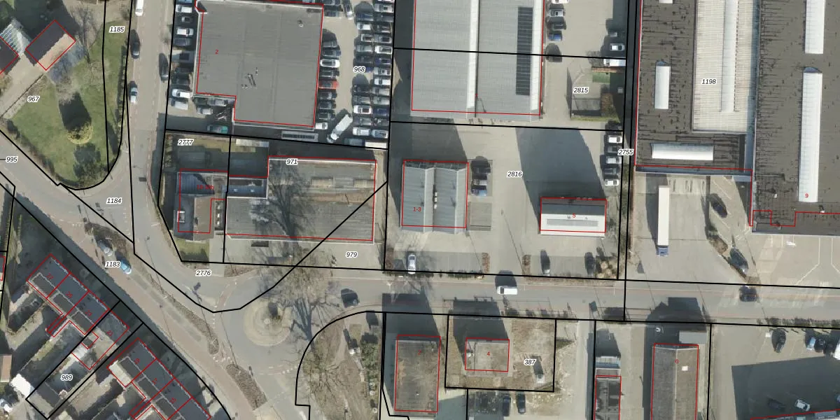 Het perceel waarop Nijverheidsstraat 1 staat heeft een oppervlakte van 1970 m². Dit is een zeer groot perceel. De perceeloppervlakte wordt geregistreerd door het Kadaster. Gedetailleerde informatie over de maten van dit perceel kunt u vinden in het rapport Kadastrale kaart met maatvoering van Nijverheidsstraat 1.