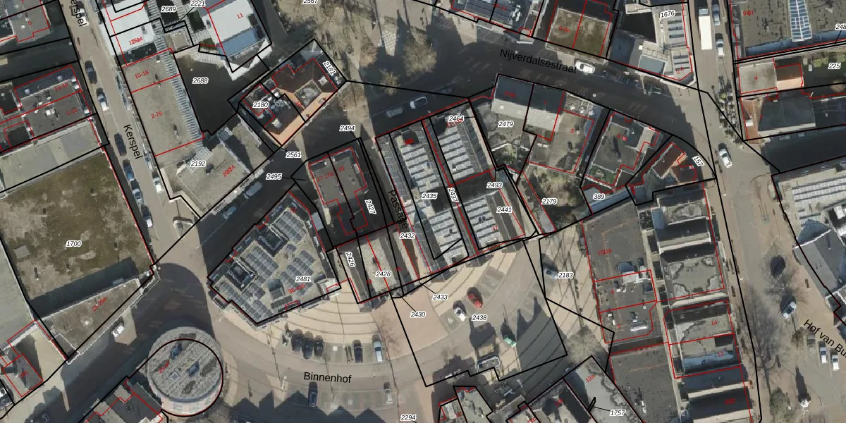 Het adres is gelegen op perceel 2435 in de sectie K en de kadastrale gemeente Wierden. De kadastrale aanduiding is aldus WDN02-K-2435. Het perceel is kleiner dan gemiddeld in Wierden. Het perceel is 251 m² groot, terwijl het gemiddelde ligt op 5350,78 m². Het grootste perceel in de kadastrale gemeente is 1,19 km². Het kleinste perceel heeft een oppervlakte van 0 m². Op het perceel liggen in totaal 11 adressen. De huidige grenzen van het perceel zijn digitaal in de Basisregistratie Kadaster (BRK) geregistreerd op 02-06-2008.