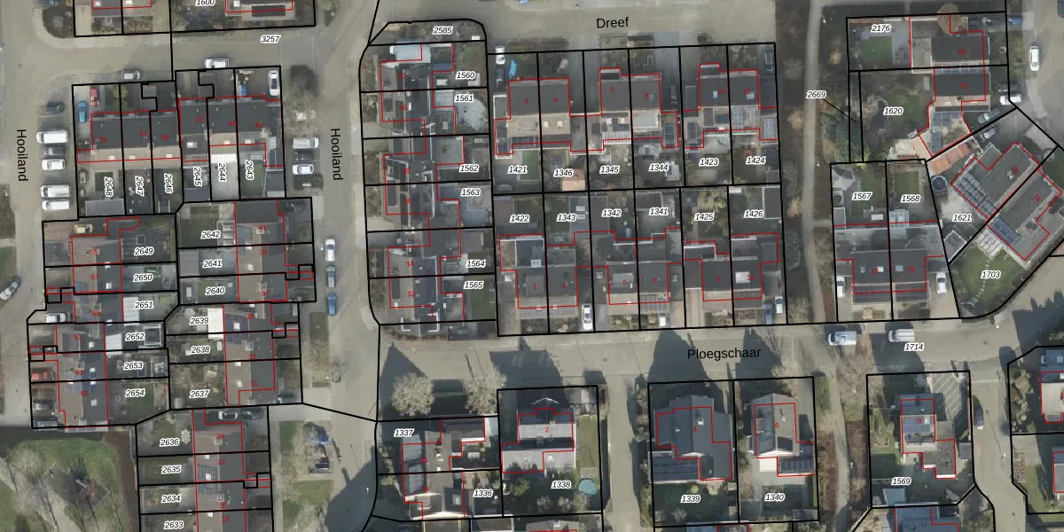 Gebruik de zoekbalk of klik op een perceel voor informatie over de adressen binnen dit perceel.