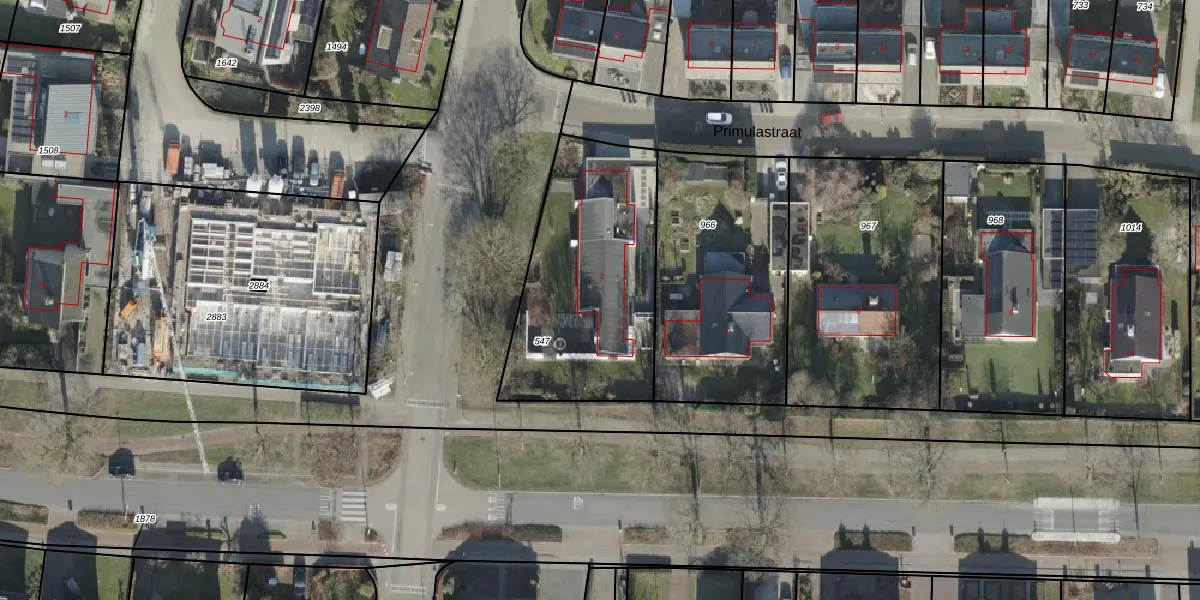 Het perceel waarop Primulastraat 2 staat heeft een oppervlakte van 913 m². Dit is een groot perceel. De perceeloppervlakte wordt geregistreerd door het Kadaster. Gedetailleerde informatie over de maten van dit perceel kunt u vinden in het rapport Kadastrale kaart met maatvoering van Primulastraat 2.