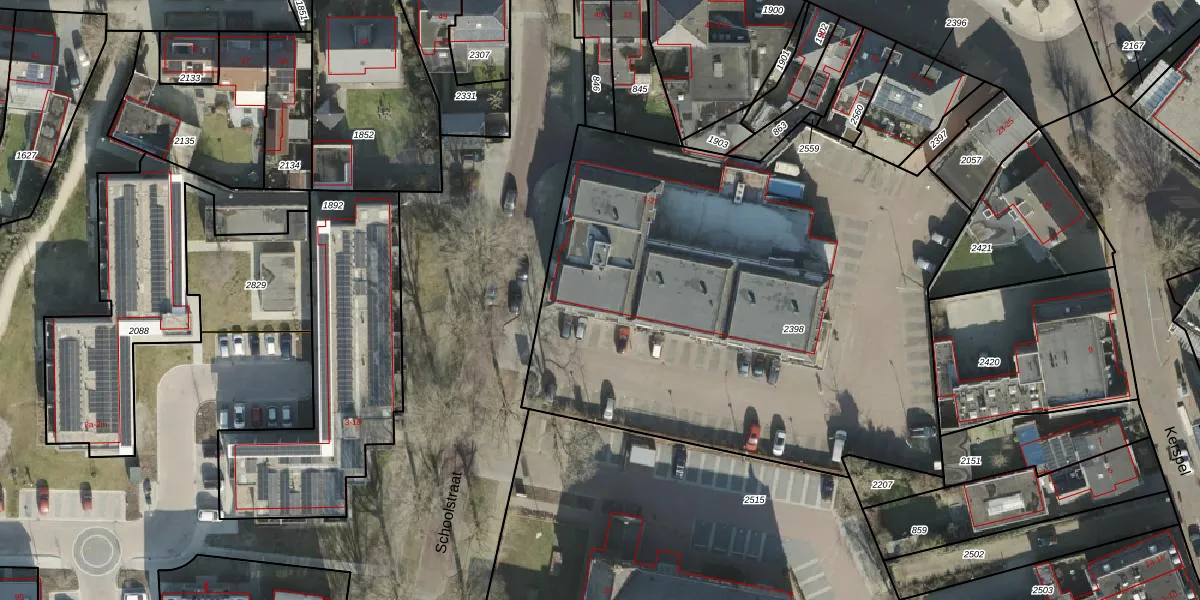 Het perceel waarop Schoolstraat 13 staat heeft een oppervlakte van 3363 m². Dit is een zeer groot perceel. De perceeloppervlakte wordt geregistreerd door het Kadaster. Gedetailleerde informatie over de maten van dit perceel kunt u vinden in het rapport Kadastrale kaart met maatvoering van Schoolstraat 13.