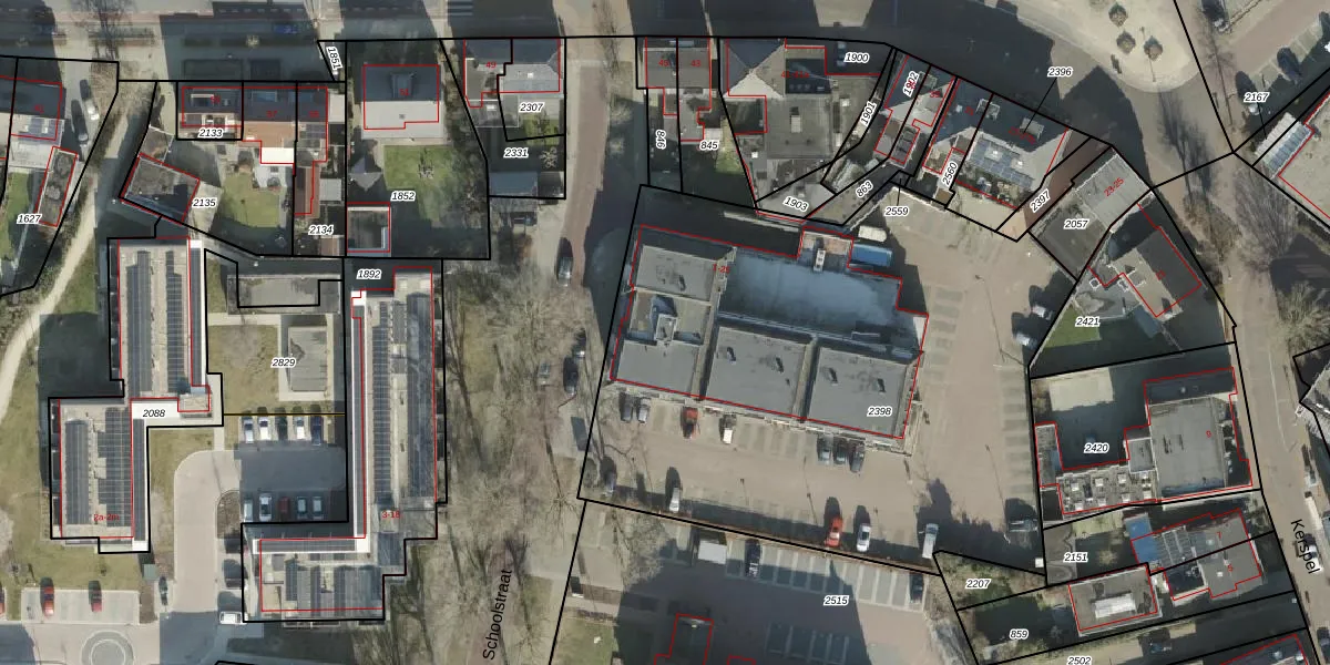 Het perceel waarop Schoolstraat 9 staat heeft een oppervlakte van 3363 m². Dit is een zeer groot perceel. De perceeloppervlakte wordt geregistreerd door het Kadaster. Gedetailleerde informatie over de maten van dit perceel kunt u vinden in het rapport Kadastrale kaart met maatvoering van Schoolstraat 9.