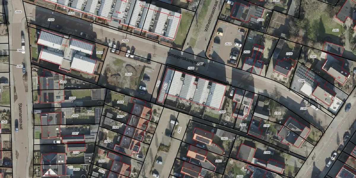 Het perceel waarop Smeijerskampstraat 17 staat heeft een oppervlakte van 939 m². Dit is een groot perceel. De perceeloppervlakte wordt geregistreerd door het Kadaster. Gedetailleerde informatie over de maten van dit perceel kunt u vinden in het rapport Kadastrale kaart met maatvoering van Smeijerskampstraat 17.