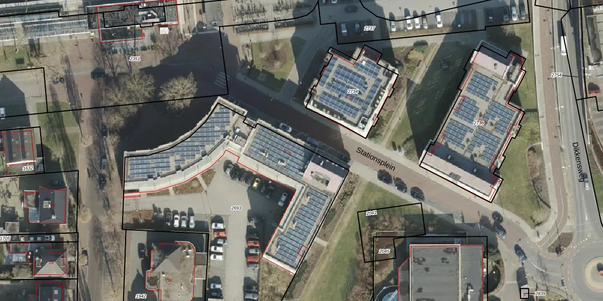 Het perceel waarop Stationsplein 48 staat heeft een oppervlakte van 3043 m². Dit is een zeer groot perceel. De perceeloppervlakte wordt geregistreerd door het Kadaster. Gedetailleerde informatie over de maten van dit perceel kunt u vinden in het rapport Kadastrale kaart met maatvoering van Stationsplein 48.