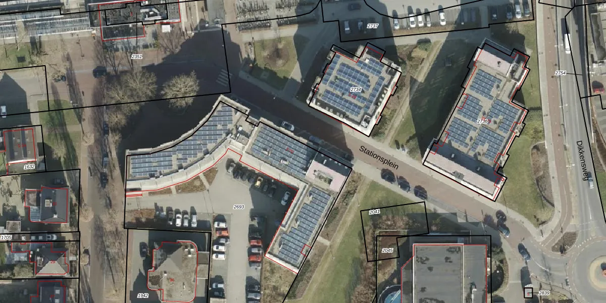 Het perceel waarop Stationsplein 54 staat heeft een oppervlakte van 3043 m². Dit is een zeer groot perceel. De perceeloppervlakte wordt geregistreerd door het Kadaster. Gedetailleerde informatie over de maten van dit perceel kunt u vinden in het rapport Kadastrale kaart met maatvoering van Stationsplein 54.