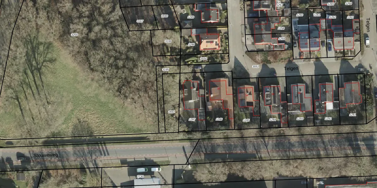 Het perceel waarop Telgen 30 staat heeft een oppervlakte van 426 m². Dit is een groot perceel. De perceeloppervlakte wordt geregistreerd door het Kadaster. Gedetailleerde informatie over de maten van dit perceel kunt u vinden in het rapport Kadastrale kaart met maatvoering van Telgen 30.