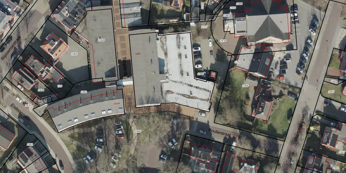 Het perceel waarop Tolgaarde 39 staat heeft een oppervlakte van 1655 m². Dit is een zeer groot perceel. De perceeloppervlakte wordt geregistreerd door het Kadaster. Gedetailleerde informatie over de maten van dit perceel kunt u vinden in het rapport Kadastrale kaart met maatvoering van Tolgaarde 39.