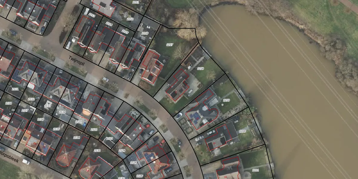 Het perceel waarop Twijnspil 27 staat heeft een oppervlakte van 738 m². Dit is een groot perceel. De perceeloppervlakte wordt geregistreerd door het Kadaster. Gedetailleerde informatie over de maten van dit perceel kunt u vinden in het rapport Kadastrale kaart met maatvoering van Twijnspil 27.