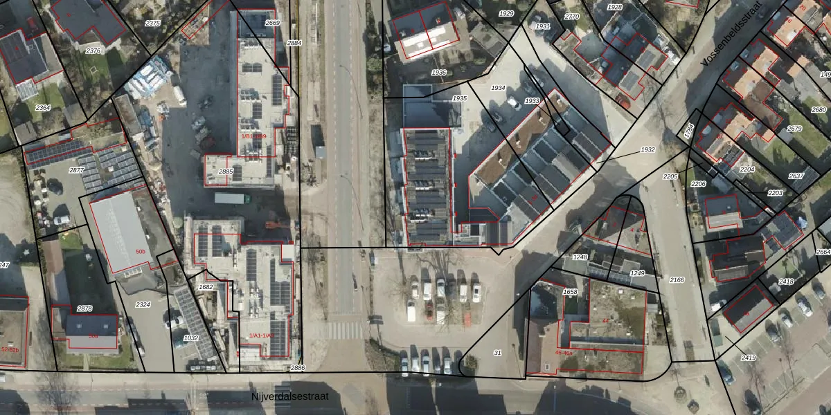 Het perceel waarop Vossenbeldsstraat 1 staat heeft een oppervlakte van 1195 m². Dit is een zeer groot perceel. De perceeloppervlakte wordt geregistreerd door het Kadaster. Gedetailleerde informatie over de maten van dit perceel kunt u vinden in het rapport Kadastrale kaart met maatvoering van Vossenbeldsstraat 1.
