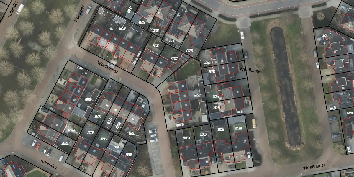 Het perceel waarop Weefkamer 59 staat heeft een oppervlakte van 835 m². Dit is een groot perceel. De perceeloppervlakte wordt geregistreerd door het Kadaster. Gedetailleerde informatie over de maten van dit perceel kunt u vinden in het rapport Kadastrale kaart met maatvoering van Weefkamer 59.