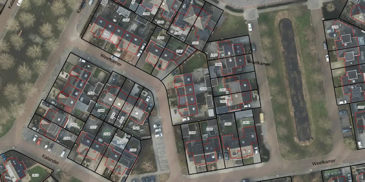 Het perceel waarop Weefkamer 61 staat heeft een oppervlakte van 835 m². Dit is een groot perceel. De perceeloppervlakte wordt geregistreerd door het Kadaster. Gedetailleerde informatie over de maten van dit perceel kunt u vinden in het rapport Kadastrale kaart met maatvoering van Weefkamer 61.