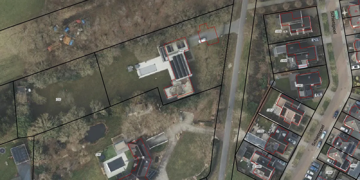 Het perceel waarop Weusteweg 13 staat heeft een oppervlakte van 2630 m². Dit is een zeer groot perceel. De perceeloppervlakte wordt geregistreerd door het Kadaster. Gedetailleerde informatie over de maten van dit perceel kunt u vinden in het rapport Kadastrale kaart met maatvoering van Weusteweg 13.
