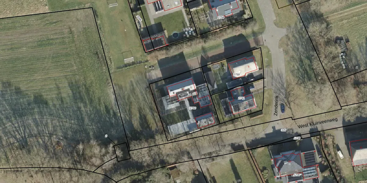 Zenderink 5 is gelegen op kadastraal perceel WDN02N2760. Deze kadastrale aanduiding is uniek en wordt gebruikt door het Kadaster om eigendomsrechten en andere zakelijke rechten vast te leggen. Het perceel maakt onderdeel uit van de kadastrale gemeente Wierden.
