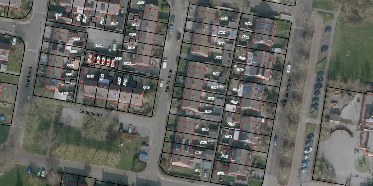 Gebruik de zoekbalk of klik op een perceel voor informatie over de adressen binnen dit perceel.